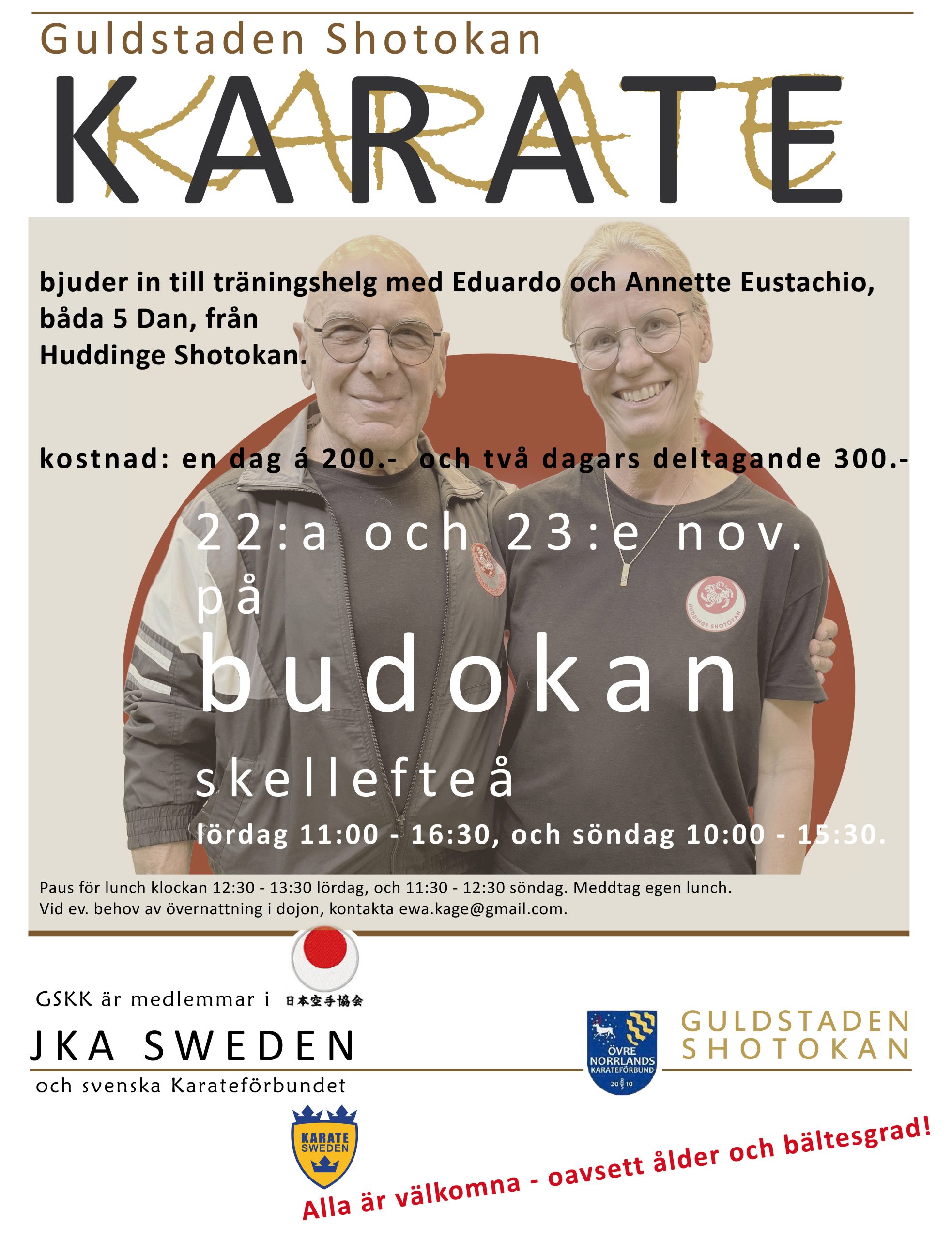 Välkomna på träningshelg i Skellefteå! Se länkar för mer info.